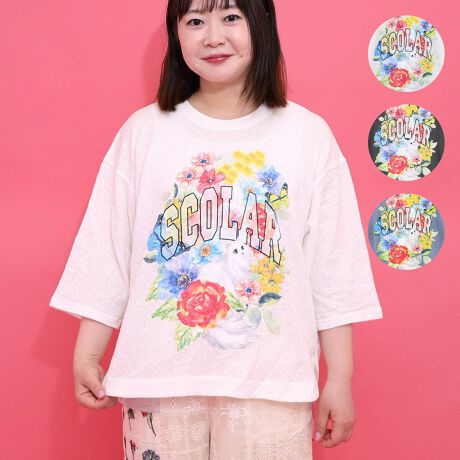 ・ローズジャガードTシャツに、立体感のある発泡プリントを重ねた奥行きあるデザイン