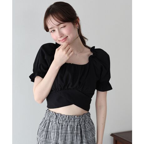 オフショルとしても、肩を隠しても着用できるバックリボンブラウス。