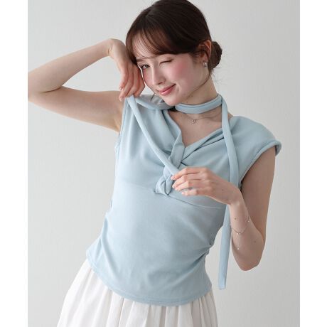 タイ付きノースリーブドレープカットソー