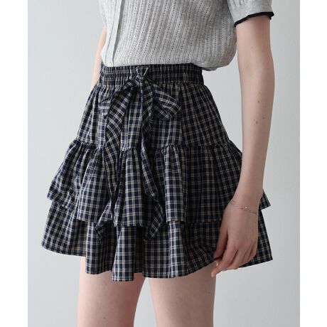 ふんわりと広がるフリルが目を引くティアードミニスカート