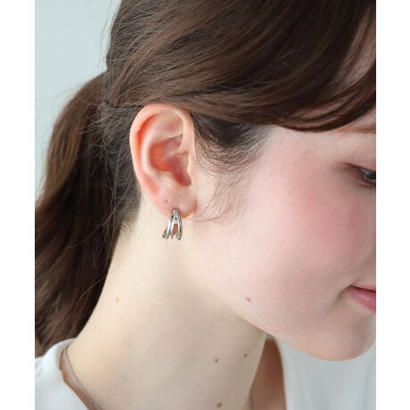ニュアンス感のある3連フープデザインで、顔周りをすっきりと見せ、洗練された印象を演出します。