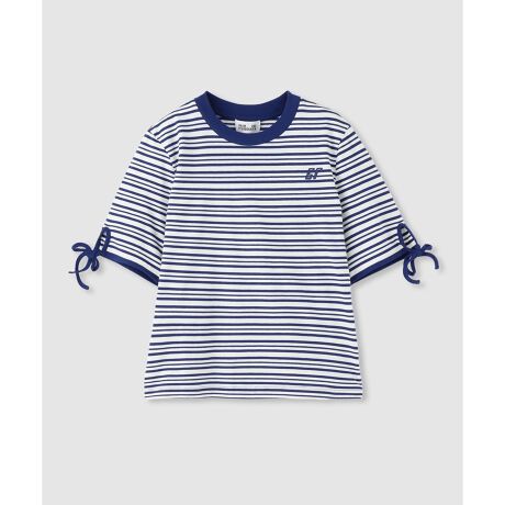 ネイビーとオフホワイトの爽やかなストライプ柄が印象的なコットンTシャツ。