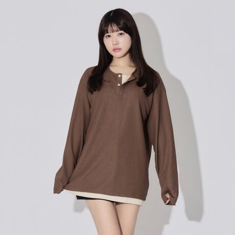 ヘンリーネックサーマルロングスリーブTシャツ レイヤードトップス