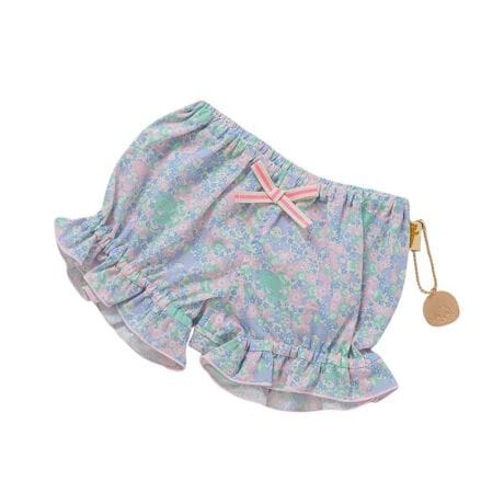 ふんわりとしたシルエットがたまらないブルマーにパステルモンチッチ柄が登場!コラボアイテムはモンチッチのお顔の限定チャーム付き!おへその位置についたカラフルなリボンテープが、トップスインしたくなる可愛らしさ。