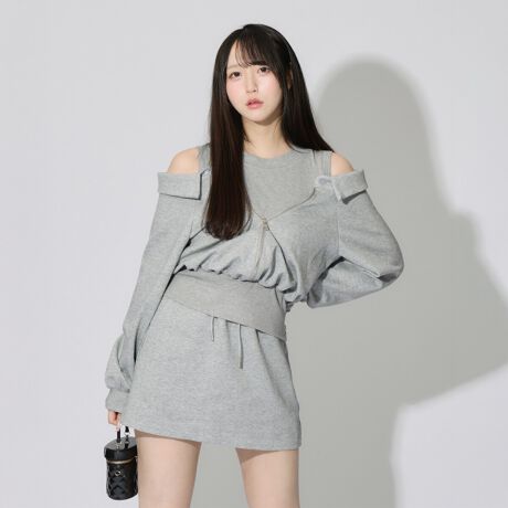レイヤードオフショルダースウェットセット