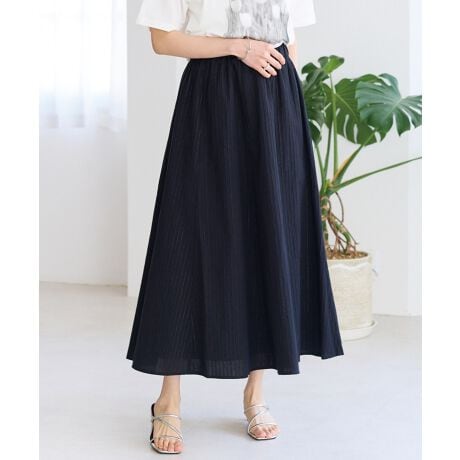 繊細なラメ糸を織り込んだストライプが上品に映えるフレアスカート。