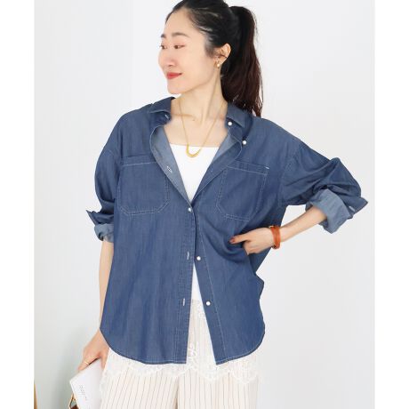 定番人気のパールボタンシャツに、シアーデニム素材が新登場しました。
