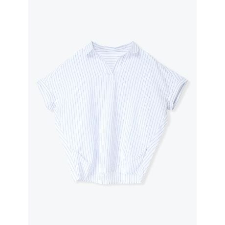 [型番:26550721911]落ち感のあるフレンチスリーブが上品な女性らしさを演出するシャツ。さらりとした肌触りで、暑い季節でも快適な着心地を実現します。スキッパーネックのデザインがさりげない抜け感をプラス。ワイドパンツと合わせたきれいめなコーディネートがおすすめです。