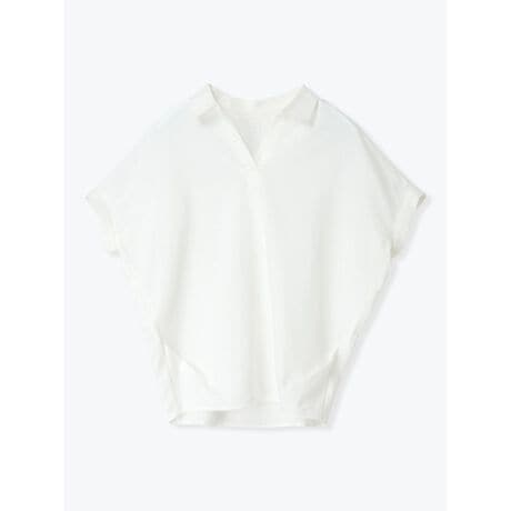 [型番:26550721911]落ち感のあるフレンチスリーブが上品な女性らしさを演出するシャツ。さらりとした肌触りで、暑い季節でも快適な着心地を実現します。スキッパーネックのデザインがさりげない抜け感をプラス。ワイドパンツと合わせたきれいめなコーディネートがおすすめです。