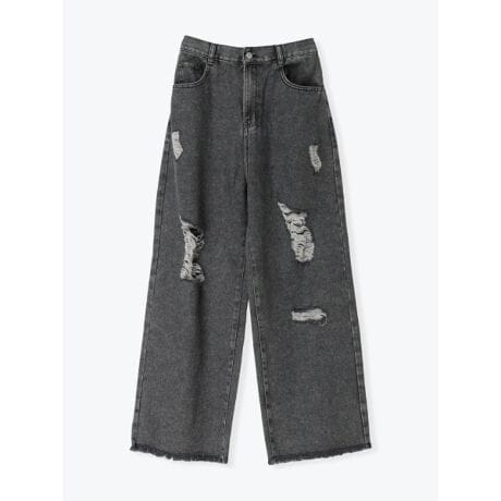 [型番:26560771396]ダメージ加工のデザインがエッジの効いた印象を与えるデニムパンツ。すとんとしたストレートシルエットで、美しい脚のラインを演出します。バックのウエストゴム仕様がラクな着心地を実現。どんなトップスにも合わせやすく、着回しの幅が広がるアイテムです。