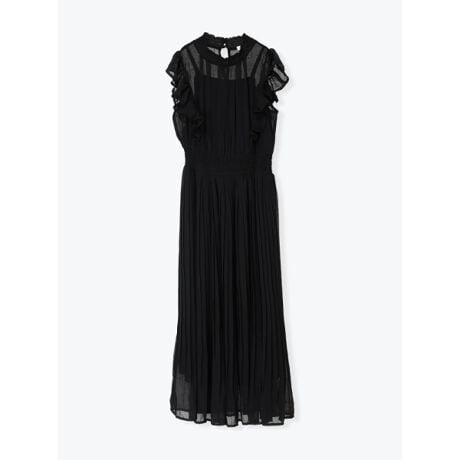 [型番:26550738312]ひらりとしたフリル袖が華やかな印象をプラスするワンピース。消しプリーツ加工を施し、表情の変化を楽しむことができます。ネックラインのシャーリングが心地よいフィット感を演出。1枚で休日のお出かけコーデが完成するアイテムです。