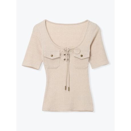 [型番:26560787731]スピンドルのデザインがスタイリングのアクセントになるTシャツ。Uネックの首元がデコルテラインを美しく見せてくれます。伸縮性に優れたリブ素材が快適な着心地を実現。ワイドパンツと合わせたバランスの良いコーディネートがおすすめです。