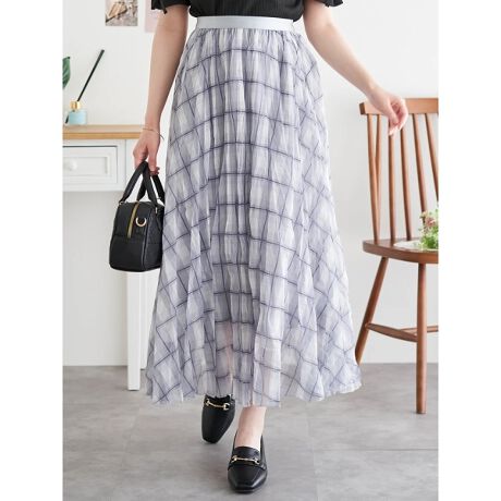 [型番:26550740705]透け感のあるチュール素材がやわらかい印象を与えるロングスカート。チェック柄のデザインがスタイリングにガーリーなムードを演出します。ふんわりとした軽やかな生地感が魅力的。季節の変わり目のお出かけコーデに大活躍するアイテムです。モデル(グレー/ライトブラウン着用)身長:160cmMサイズ着用