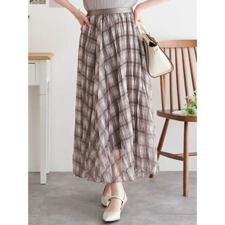 チュールチェック柄ロングスカート