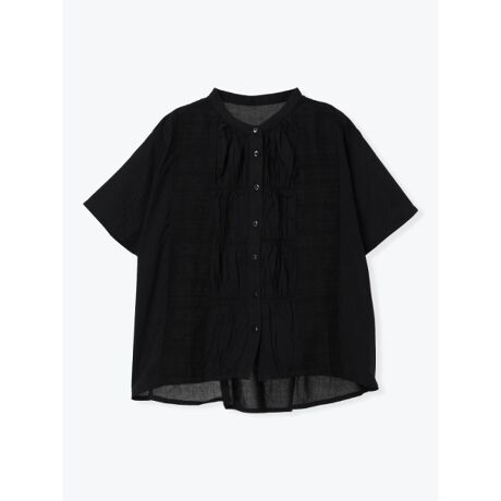 [型番:26410713562]刺しゅう切り替えのデザインが表情豊かな印象を与えるブラウス。背面にはギャザーを施しており、ふんわりとしたシルエットを演出します。シンプルなバンドカラーがすっきりとした雰囲気をプラス。パンツやスカートなど、様々なボトムスと相性の良いアイテムです。Hare no hi/ハレノヒ