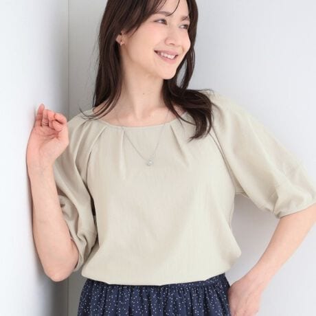シンプルながらも袖のボリューム感がアクセントになり、二の腕カバーも叶います。