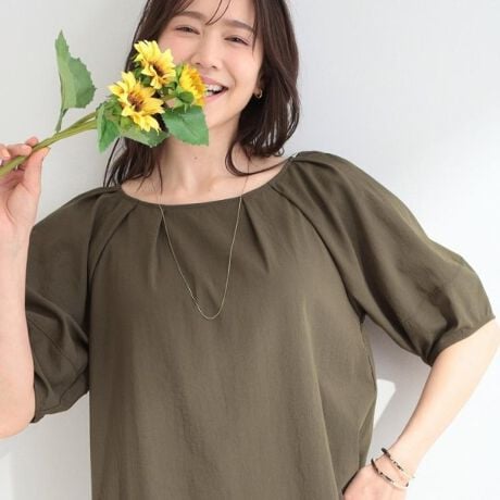 シンプルながらも袖のボリューム感がアクセントになり、二の腕カバーも叶います。