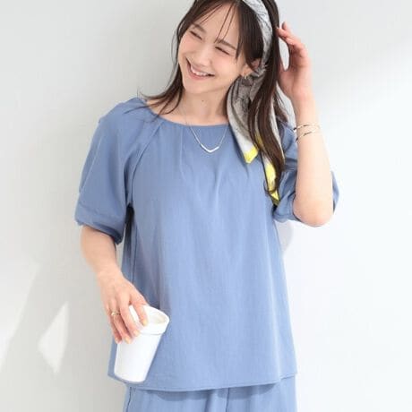 シンプルながらも袖のボリューム感がアクセントになり、二の腕カバーも叶います。