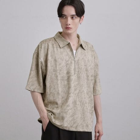人気のハーフジップのポロシャツにトレンドのヴィンテージ加工を施した今年イチオシのデザインです。