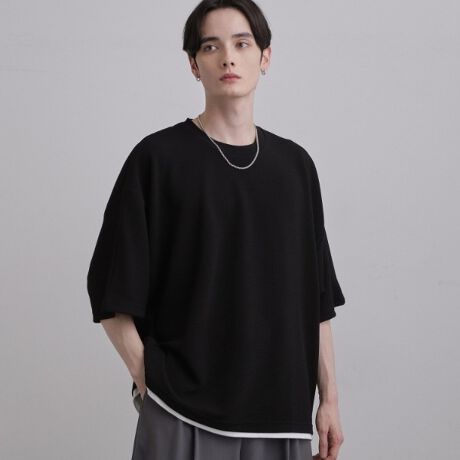 裾にあしらったフェイクレイヤードデザインが、一枚で着るだけで計算されたスタイリングを完成させます。