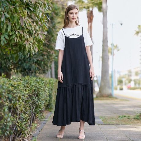 【歩くたびにふわりと揺れる、華やかなシルエットが魅力のキャミワンピース】
