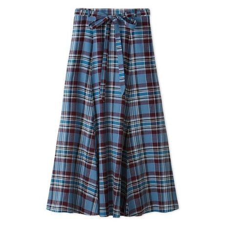 そっと夏の気配を感じさせる、華やかなマドラスチェック。歩くたびにふんわり広がるサーキュラーデザインで、軽やかで涼しげな印象。前に長めのスリットを入れ、足さばきの良さと抜け感を両立。</p><p><strong>【Design】</strong>