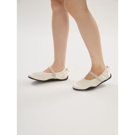 サテン素材が柔らかな光沢感を添え、軽やかでエレガントな足元を演出します。