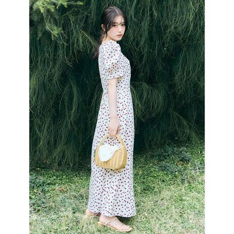 ・SNIDELオリジナルのフルーツプリントをあしらった華やかなワンピース。