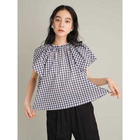 首周りから繊細にギャザーを入れることで立体的なフォルムを作った、華やかなブラウス。首周りはピコレース風のステッチでキュートに仕上げています。