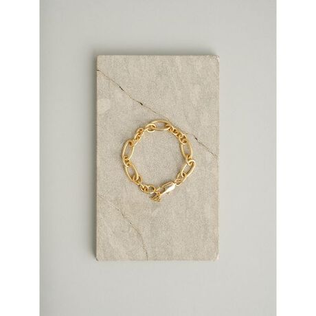 <b>【シンプルながら変化に富んだパーツを集めた、個性的なチェーンブレス。高品質のメッキで、リッチな質感&耐久性アップ】</b>