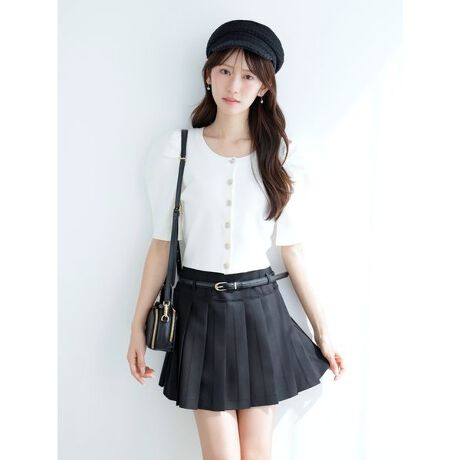 ・プリーツデザインとベルトディテールが目を惹くミニスカショーパン。