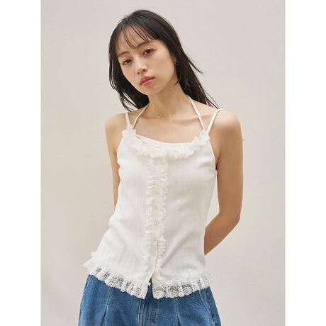 ・1枚でレイヤードスタイルが完成するデザインキャミソール。