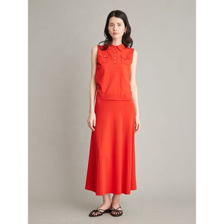 ノースリーブのポロNTとナローニットスカートがセットになった、うれしいアイテム。