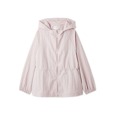 ウエスト切り替えでスタイルアップを叶えつつ、内側に付いたドローコードでさらに絞ってメリハリのあるシルエットにも調整可能です。ファスナーや左胸のチャームには薄いゴールドカラーを使用し、スポーティーさの中にも大人上品なディテールをプラス。