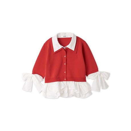 ・ニットとシャツをドッキングした、レイヤード風デザインが魅力。