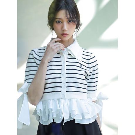 ・袖のリボンディテールがフェミニンなアクセントに。