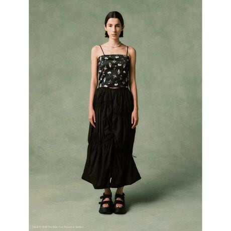 軽やかな素材にギャザーを取り入れたスポーティーなスカート。