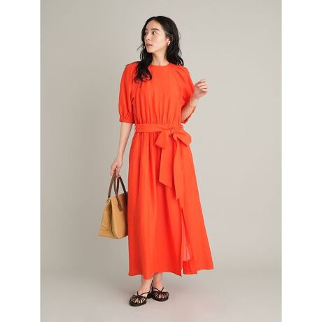 やわらかく広がるフレアシルエットに、程よいボリュームのパフスリーブを組み合わせた、女性らしさを引き立てるデザイン。ウエストはゴム仕様でリラックス感がありながら、自然とメリハリのあるシルエットを演出してくれます。シンプルながらも1枚で着映えする、今季らしいレディーな印象に仕上げています。</p><p><strong>【Material】</strong>