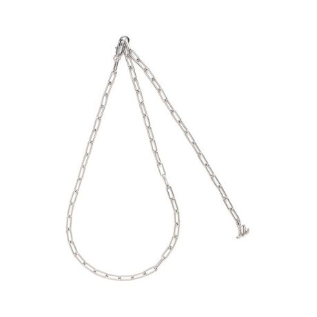 金具を留める場所で長さを調節できるので、服に合わせてアレンジ可能。長めのネックレスにしたり、チョーカー風にして端を長く垂らしたり、手首にぐるぐる巻いたり、マルチで楽しめます。つけるだけでスタイリングのアクセントになり、モードな印象をプラスしてくれます。