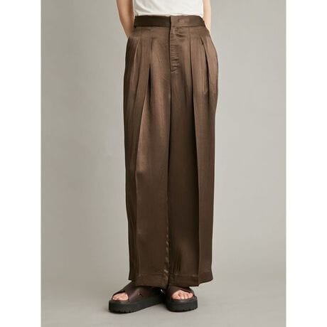 <b>【上品なヴィンテージサテンのパンツは、こなれ感が演出できる美脚&ワイドシルエット】</b>