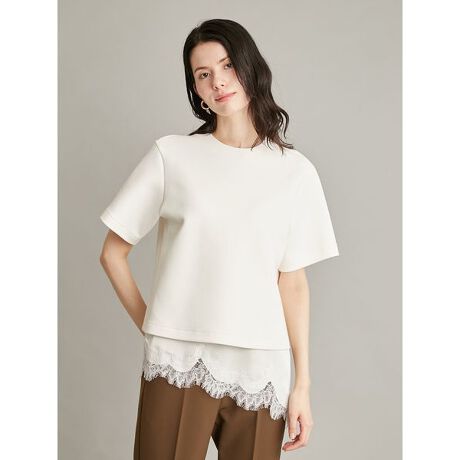 <b>【きれいめ素材のTシャツに、レースキャミをセット。2枚でバランスよく、レイヤードスタイルが完成するアイテム】</b>