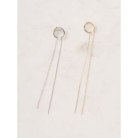 ・2種類のロングチェーンが揺れる印象的なイヤカフ。