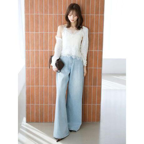 ・ハイウエストで股上が深めのトレンドライクなワイドシルエットデニム。