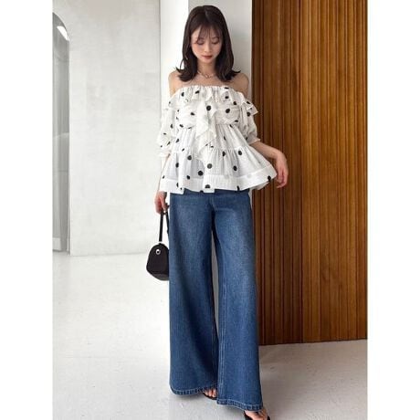 ・ハイウエストで股上が深めのトレンドライクなワイドシルエットデニム。