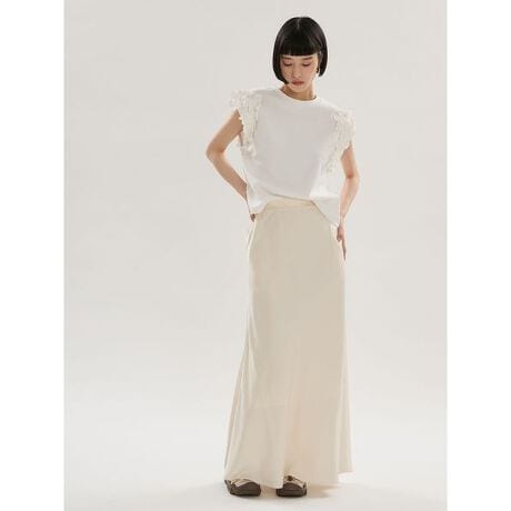 裾まわりに分量を出したシンプルなナロースカート。