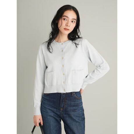 オリジナルのロゴ入り金ボタンがキラリと映える、クロップド丈のカーディガンです。小さめのパッチポケットもアクセント。