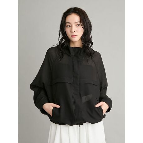 メッシュ素材で軽く仕上げた、モードな印象のジップアップブルゾンです。