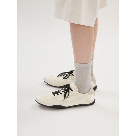 サテン素材の上品な光沢感が魅力のバレエコア風スニーカー。