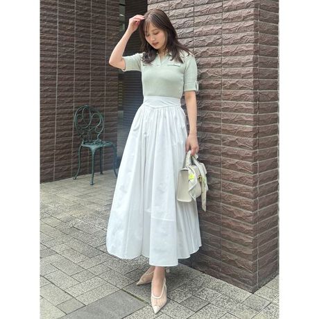 ・ニットと布帛の異素材ミックスで、奥行きのあるスタイルに仕上げました。