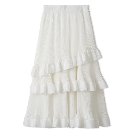 スカートを3段アシンメトリーに重ねたティアードデザイン。ランダムヘムで動きを出し、裾にハリを持たせる仕様で華やかでドラマティックな印象に仕上げています。